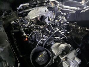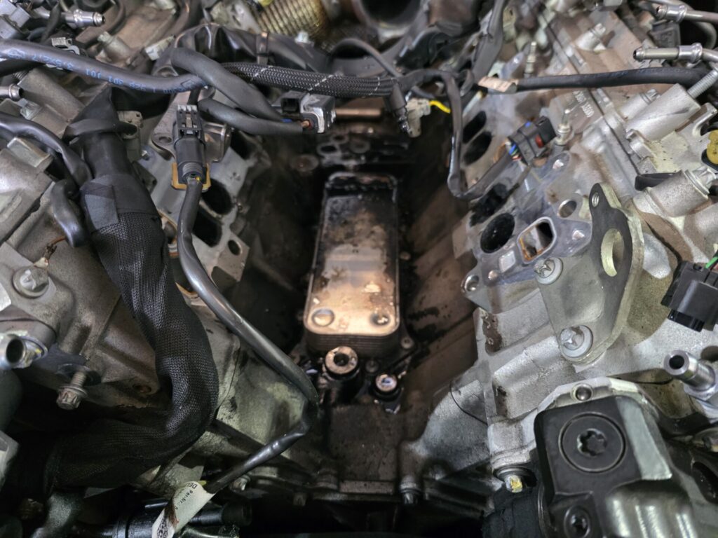 | 施工内容 | エンジンオイル漏れです。Vバンク中央のオイルクーラーのガスケットより漏れ |