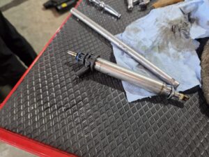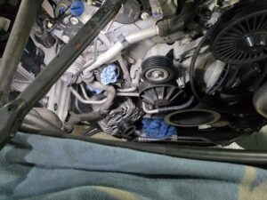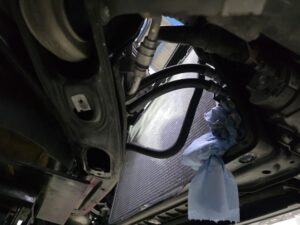 | 施工内容 | エンジンチェックランプ点灯にてエンジン振動 診断の結果5番のインジェクター不良 後診断中に電圧ドロップ。このタイミングでオルタネータ故障です。交換にはラジエター脱着、エンジンを上に吊り上げての摘出です |